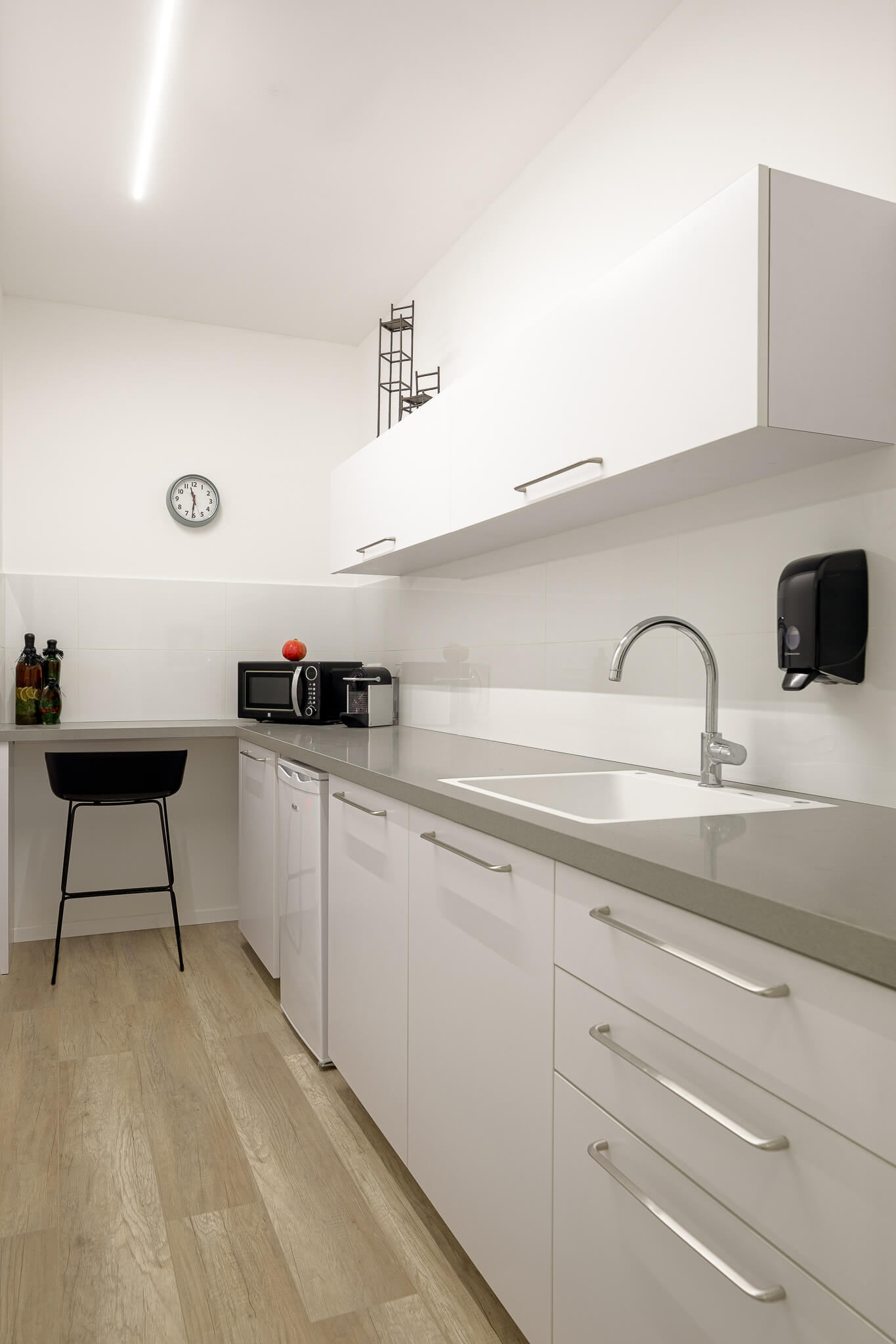 עיצוב כיפי שמשרה תחושה של רוגע ואווריריות ברחבי המרפאה, כולל בחדר ההמתנה ובחדרי השירותים, תוך כדי מענה לצרכי הלקוחה ולדרישות משרד הבריאות.
